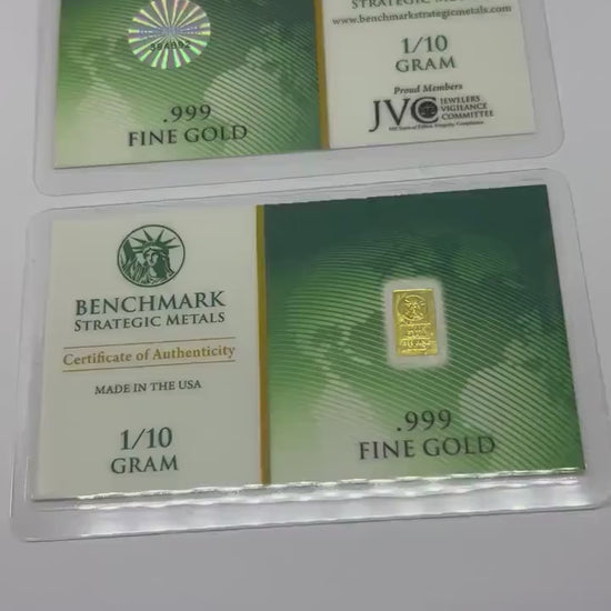 Réduire la quantité de 10 Lingots 1/10 grammes or fin 24k 999.9